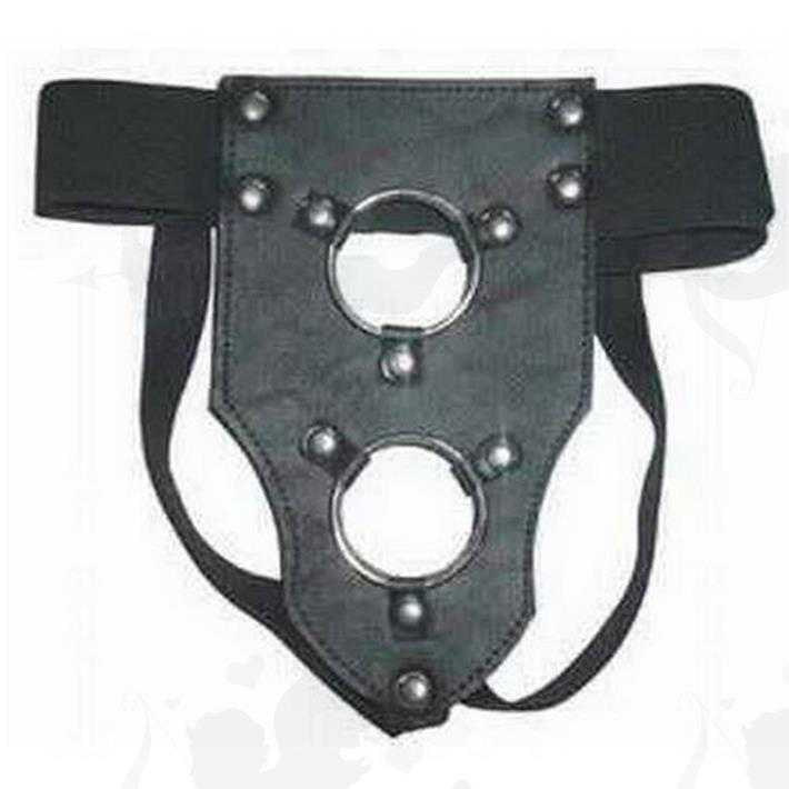 Arnés reforzado de cuero, para penetración externa. Con cinturón regulable cintura
