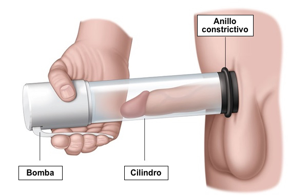 Por lo general, la bomba de vacío consiste en un cilindro de plástico conectado a una bomba, que puede ser manual o eléctrica, y una banda de goma o anillo de constricción. Usarla es muy sencillo: