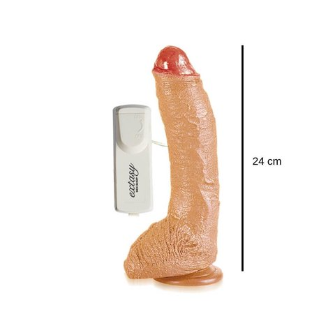 Excelente consolador con vibración realístico, es ideal para fantasías con actores porno. Su cuerpo texturado y semi flexible permite que sientas hasta el último centímetro de este pene realístico, glande con forma y textura y una terminación con tésticulos y base sólida. El efecto vibración le dará el toque final a tus fantasías más íntimas.