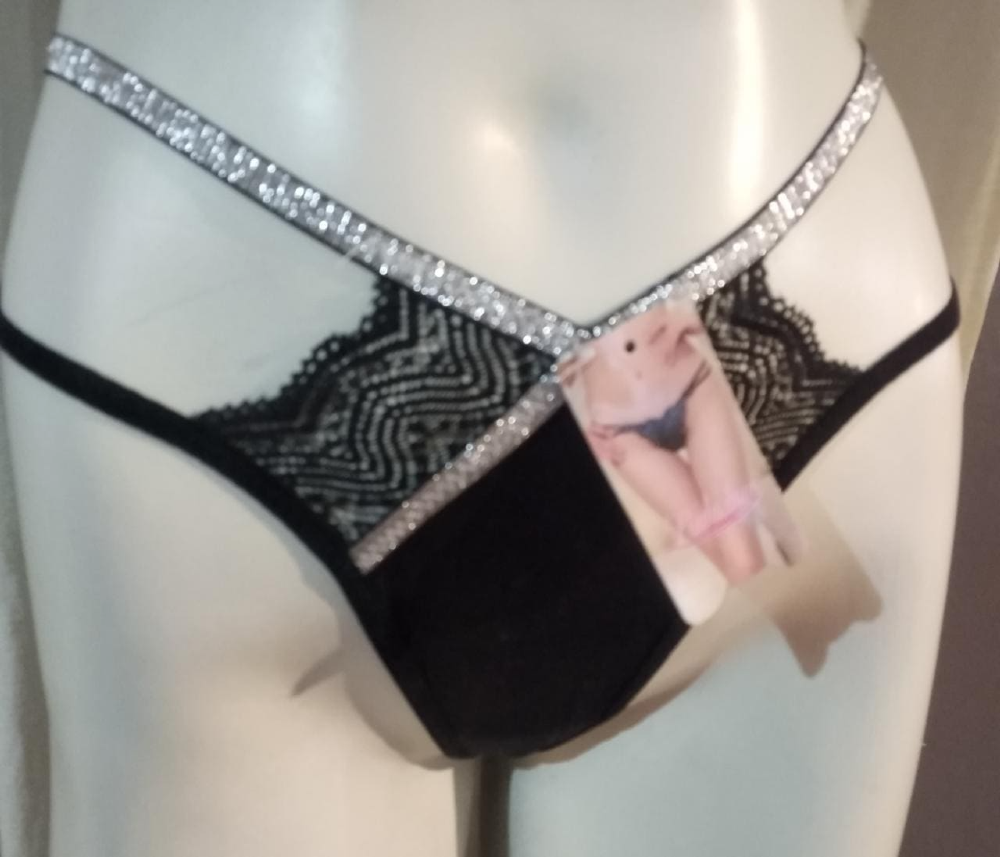 Tanga Negra 2 Tiras Plateadas