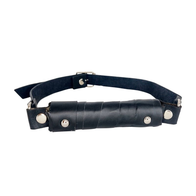 Mordaza fabricada con cuero, en este caso sin pelota, con palo como si fuese el frenillo de los caballos o yeguas...para que sepan quien manda, de manera que lo que digas no se cuestione todos tus pedidos se cumplen!!!